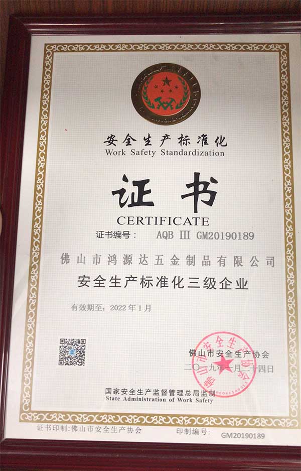 公司一直以誠信、實力、質(zhì)量的高要求獲得業(yè)界的認(rèn)可,鴻源達(dá)一直以“客戶至上、信譽第一、精益求精、優(yōu)質(zhì)服務(wù)”為經(jīng)營理念持續(xù)長期發(fā)展,正是因為高標(biāo)準(zhǔn),高要求,鴻源達(dá)五金制品廠受到了廣大客戶的一致認(rèn)可與好評。